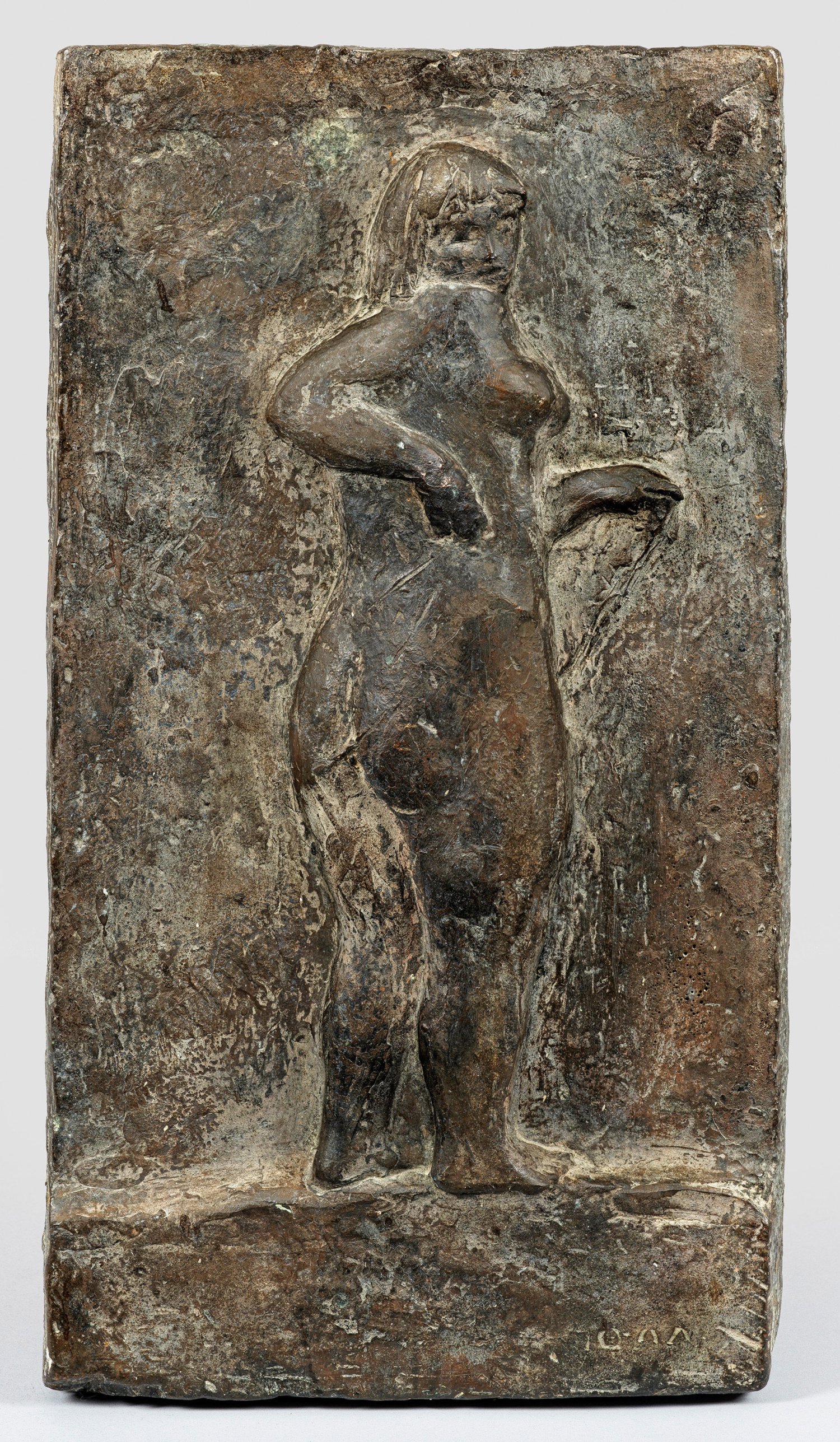 Dark brown patinated bronze. Monogrammed. Probably unique cast.