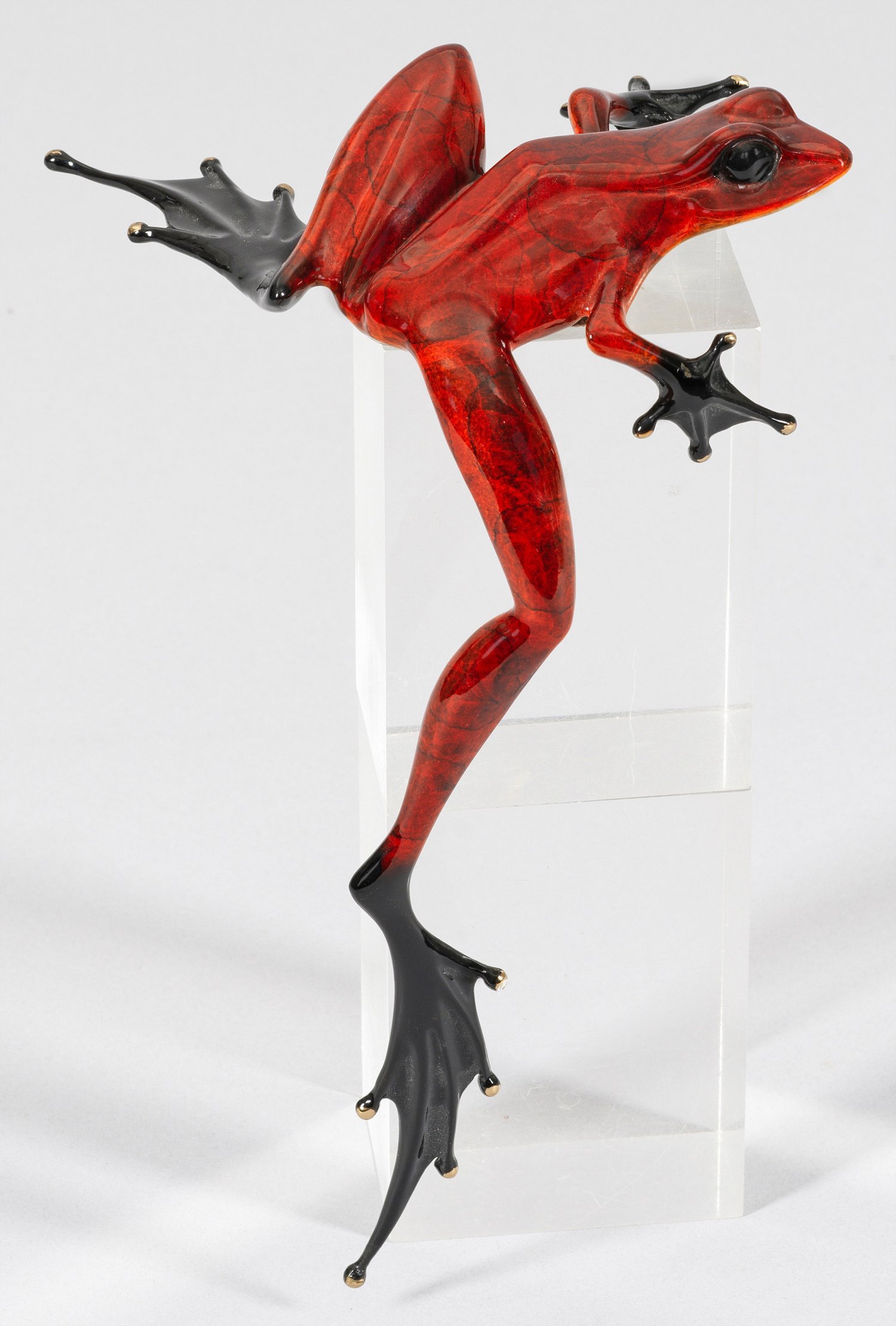 Bronze, polychrom bemalt, 2004. Sign., dat. u. nummeriert 430/5000. Frösche, oft in dynamischen, humorvoll-kuriosen Darstellungen sind eines der Hauptthemen des britisch-amerikanischen Bildhauers, was ihm den Beinamen "Frogman" einbrachte. Ger. besch.; H. ca. 18 cm.