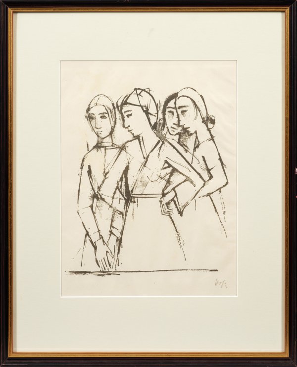 Lithographie/Japan Papier, 1923. R. u. sign.; Blatt 5 (von 11) aus der Mappe "Zenana", erschienen in einer Gesamtauflage von 200 Exemplaren (davon 80 auf Japan) bei der Marées Gesellschaft (Blindstempel)/R. Piper & Co., München, 1923. Die in seiner bedeutendsten Schaffensphase entstandene "Zenana"-Folge bildet zugleich einen Höhepunkt seines druckgrafischen Oeuvres. Wvz. Rathenau L. 177. 34,7 cm x 26 cm (Passepartoutausschnitt). Blatt ca. 45,5 cm x 34,5 cm. Rahmen.
