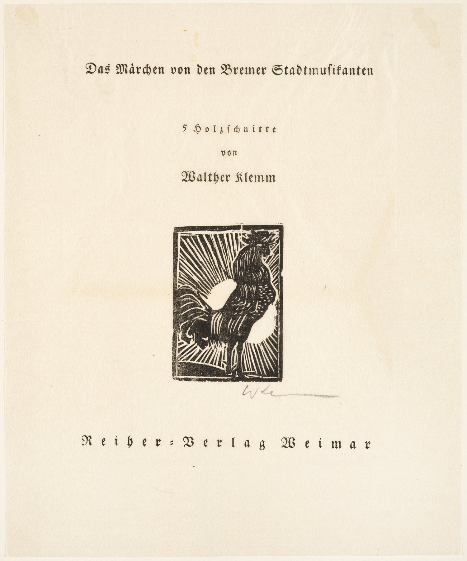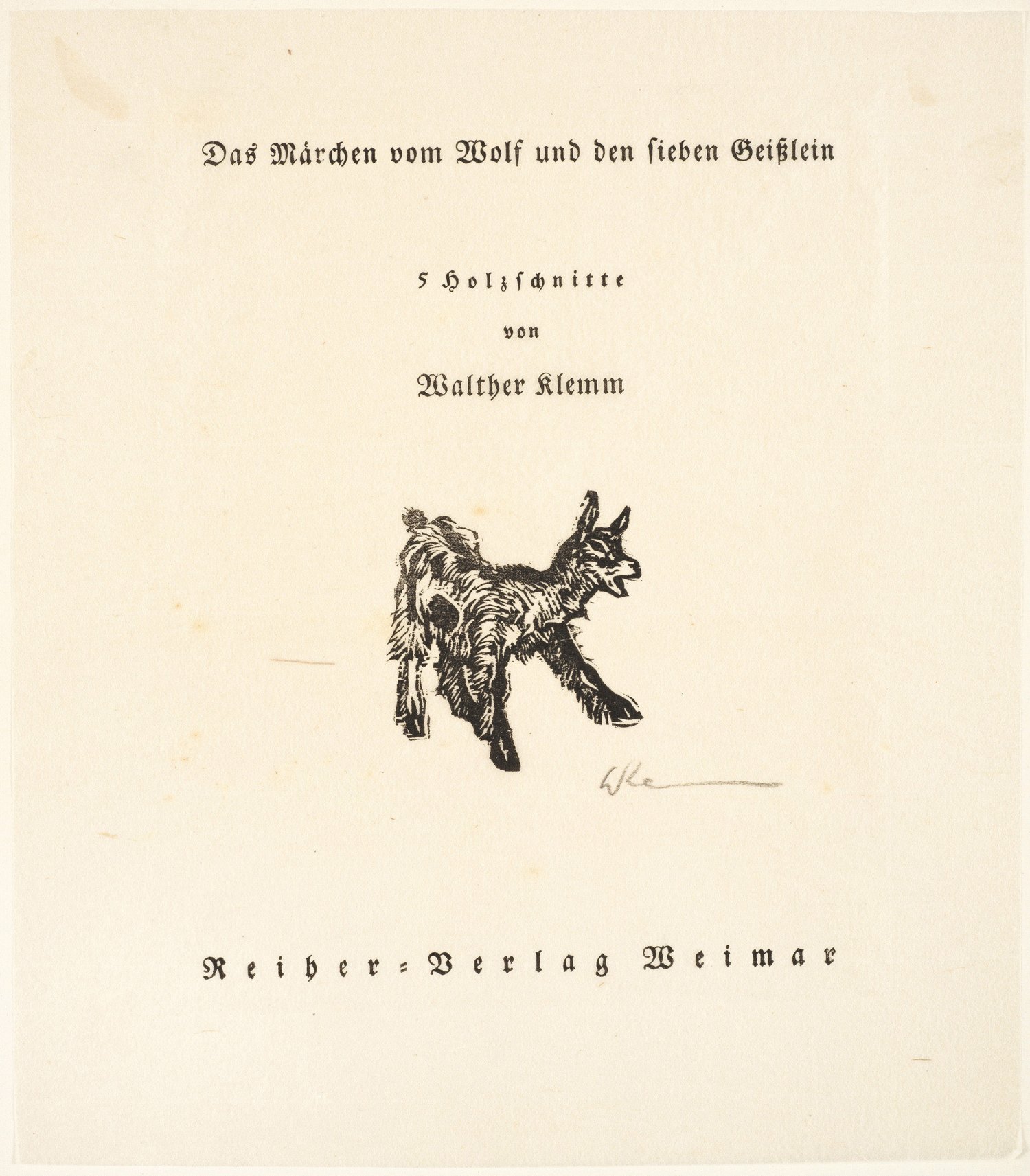 2 Mappen. Mit 5 jeweils sign. Holzschnitten auf dünnem Japanpapier (zuzüglich jeweils 1 weiterem Holzschnitt auf dem Titelblatt). Die Einbände mit Deckel-Holzschnitten von W. Klemm ausgeführt von Otto Dorfner in Weimar, erschienen als II. und III. Märchen-Mappe des Reiher-Verlags, Weimar, 1922; Unnummerierte Exemplare außerhalb der Auflage von 50. Mappen ca. 32,5 cm x 25 cm.