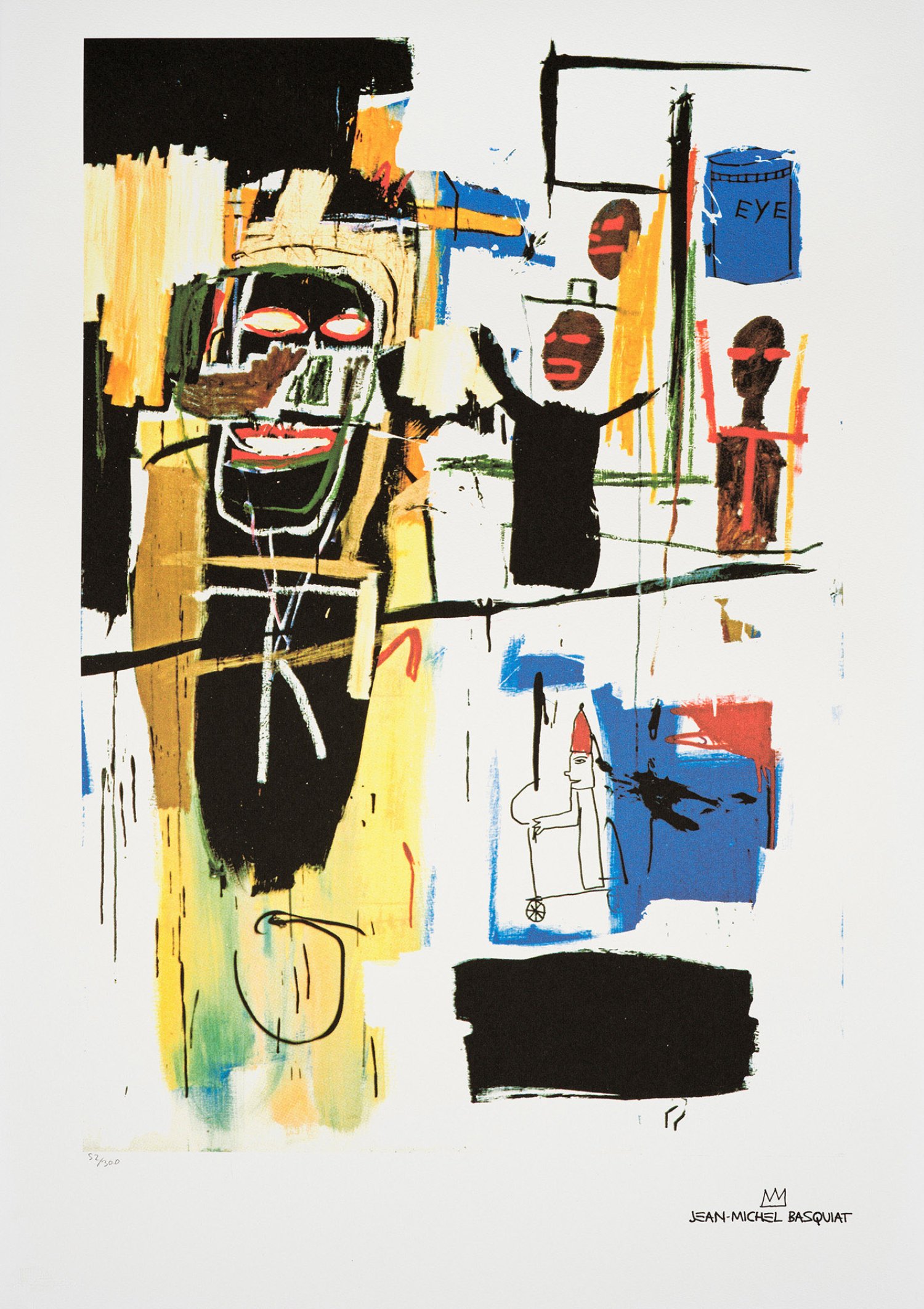 Farboffsetlithographie/Magnani-Bütten (Wasserzeichen). Im Stein sign. sowie von fremder Hand nummeriert 52/300. Blindstempel der Künstlersignatur. Nach dem gleichnamigen Gemälde von Basquiat aus dem Jahr 1984 (Wvz. Marshall/Prat 3). Blatt 70,3 cm x 49,5 cm.