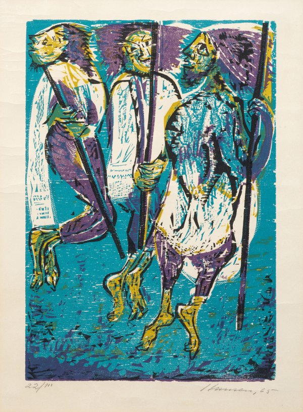 Woodcut in colours on paper, 1964. Hand-signed, dated (19)65 and numbered 22/100.