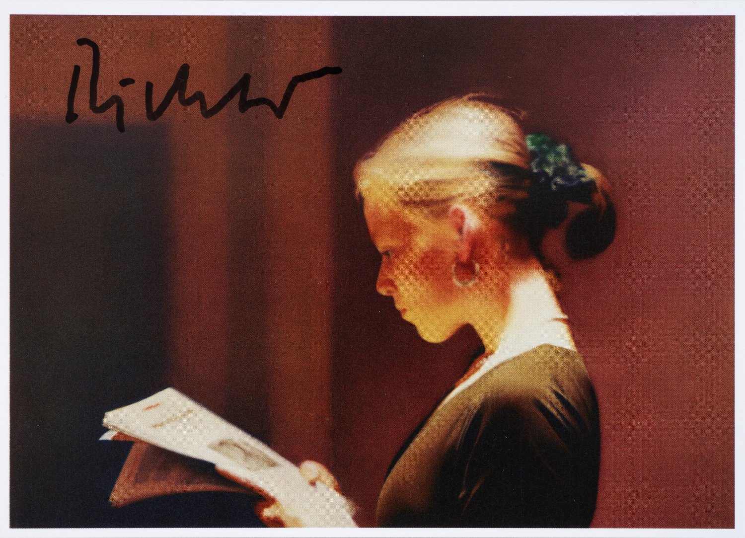 Offset print in colours on thin cardboard (postcard). Hand-signed with black felt-pen. Published by König Postkartenverlag, Cologne, 2012. After the artwork by Richter from 1994.