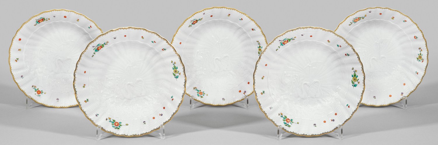 Lot 368: Fünf Suppenteller mit Schwanenservice-Dekor