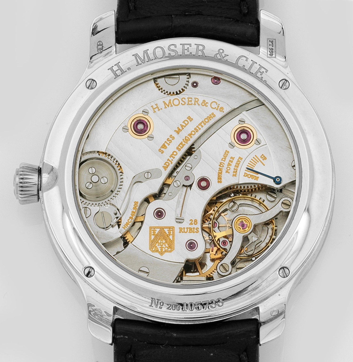 Gentlemen's wristwatch by H. Moser & Cie., mechanical movement, in platinum. Maker's mark. Original wooden box.