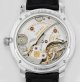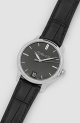 Platin, gest. 950. Rundes Uhrengehäuse, anthrazitfarben gekörntes Zifferblatt, Stabindexe und Zeiger, Zentrale Sekunde aus der Mitte, Datumsanzeige, verglaster Boden. Mechanisches Werk mit Handaufzug Kaliber 342. Schwarzes, geprägtes Lederarmband mit HMC-Platin-Dornenschließe. Ref.-Nr. 105733, Nr. 200, Werk-Nr. HMC342.503. Herstellerzeichen. D. 41 mm. Gew. ca. 143,47 g. Original Markasser-Holzbox.