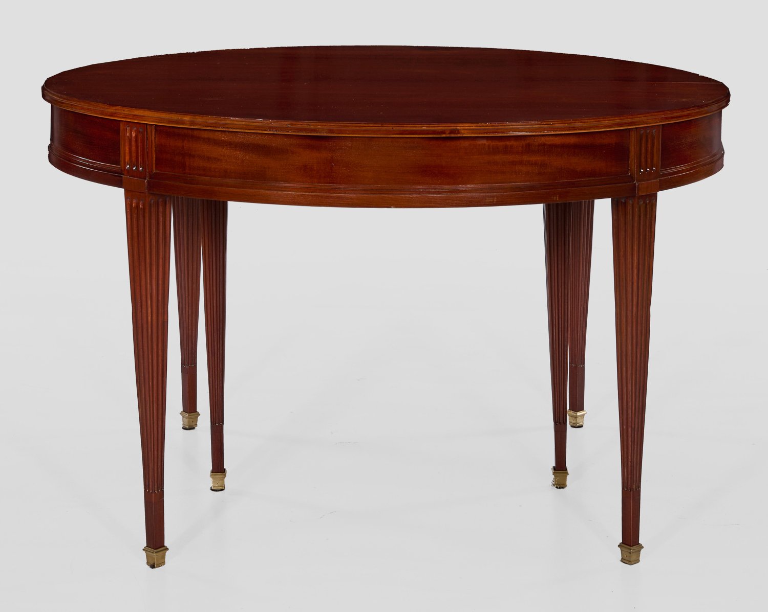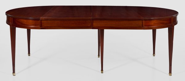 A French mahogany Louis XVI dining table. Two additional tops later.