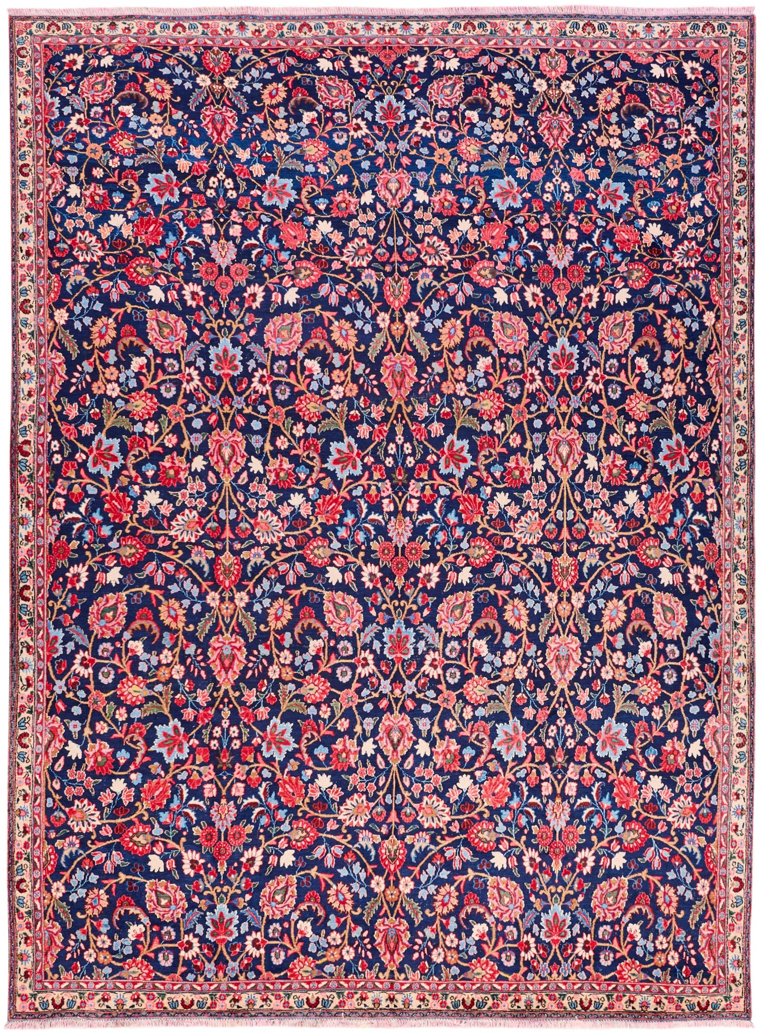 Persien. Mitte 20. Jh.; Wolle auf Baumwolle. Im dunkelblauen Innenfeld flächendeckende Musterung aus üppigen, arabesk angeordneten Blütenranken. Umlaufend schmale Bordüre. Verkürzt. 336 cm x 248 cm.