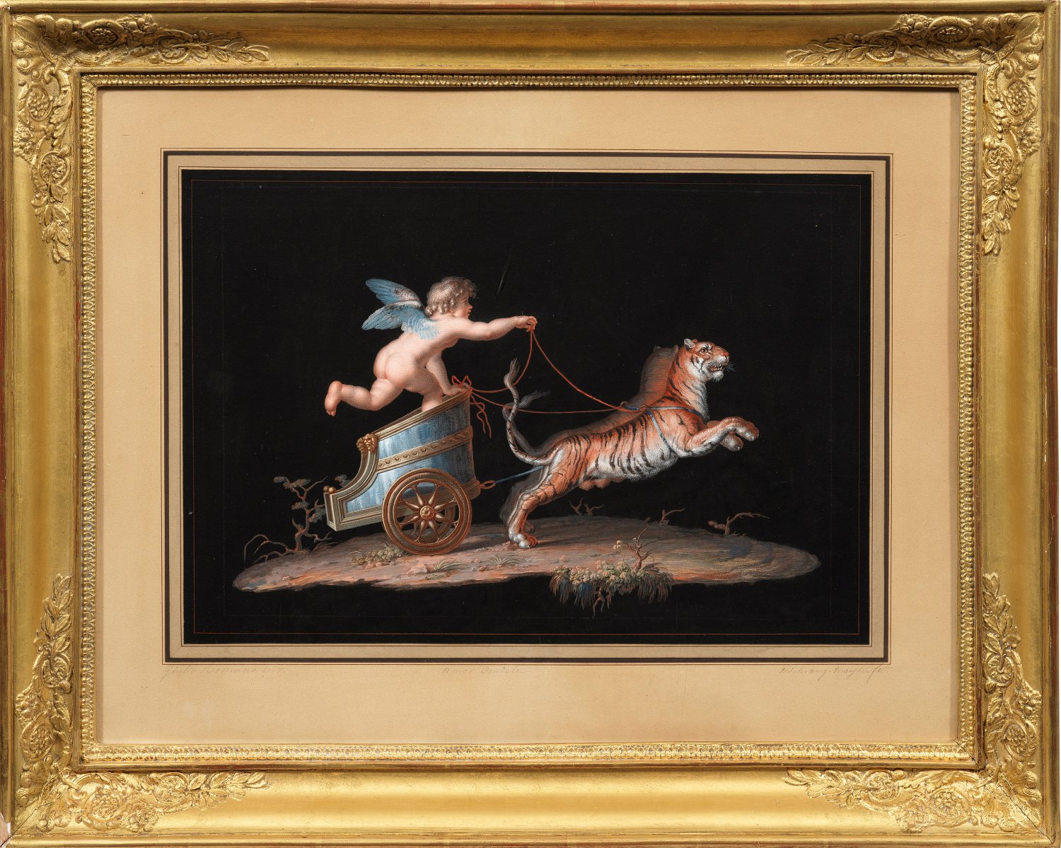 Amor in einem von zwei Tigern gezogenem Streitwagen
