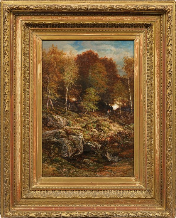 Ortmans gehörte, wie es auch in diesem Gemälde von 1876 deutlich sichtbar ist, zur Schule von Barbizon, verband diese aber auch mit anderen Stileinflüssen. Er war 1843/44 Schüler des Landschaftsmalers Jacob Jacobs an der Akademie in Antwerpen, arbeitete in Belgien im Atelier von Eugéne Verboeckhoven und freundete sich in Brüssel mit dem niederländischen Landschaftsmaler Willem Roelofs an. 1849 besuchte Ortmanns erstmals den Wald von Fontainebleau, wo er seit 1854 größtenteils lebte und dort u. a. Théodore Rousseau und Rosa Bonheur kennenlernte. 1850 und 1857-1884 stellte Ortmans im Salon in Paris aus, beschickte aber auch Ausstellungen in Antwerpen, Brüssel, Gent, London, New York, Cincinnati und New Haven. Öl/Lwd.; L. u. sign. u. dat. (18)76. 58 cm x 38 cm. Rahmen.