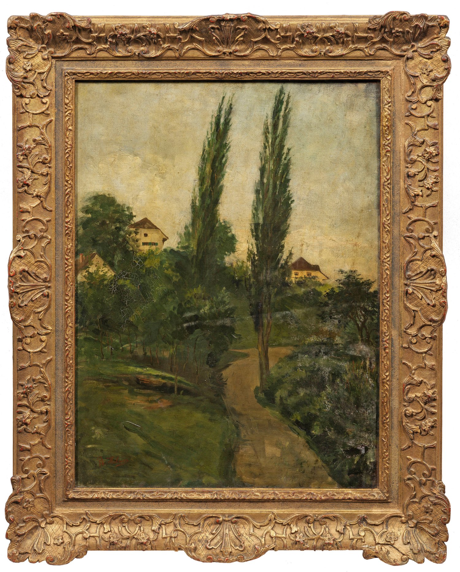 Oil on canvas. Signed. Old gallery label on the reverse. Probably original frame.