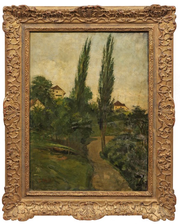 Impressionistisch aufgefasste, mit lockerem Duktus gemalte Darstellung, wohl um 1900. Der in seinen Motiven vielseitige Maler studierte an der Münchener Akademie bei Wilhelm Leibl und später Wilhelm von Lindenschmit. Seit 1906 lebte er in Olching als freischaffender Künstler. Eine größere Kollektion von Werken Helmers besitzt die Pfalzgalerie in Kaiserslautern, die ihm 1926 auch eine Gedächtnis-Ausstellung widmete. Öl/Lwd.; L. u. sign.; Verso altes Etikett der Galerie Fritz Zickel, München. 75,5 cm x 57 cm. Wohl Original-Rahmen.