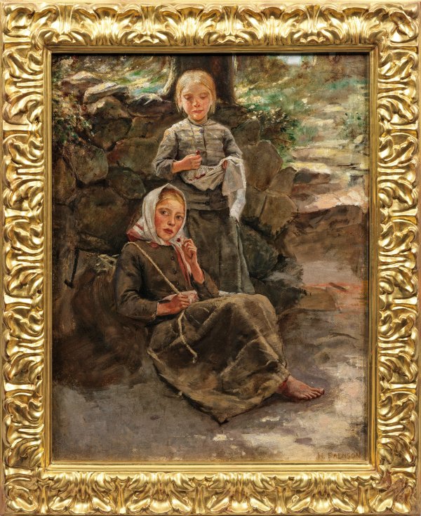 Realistisches, einfühlsames Kinderbildnis. Es entstand wohl in den 1880er Jahren, als er sich verstärkt ländlichen Motiven und Kinderbildern zuwandte und ist beeinflusst von Gustave Courbet, Jean-François Millet und der Schule von Barbizon sowie den neueren Tendenzen des Impressionismus. Salmon ging 1880 nach Paris, wo ihn Millet und andere dazu anregten, sich der Freilichtmalerei und Themen aus dem Volksleben zuzuwenden. Seit 1883 verbrachte er die Sommer öfters in Dalby in Skåne/Südschweden. Außer am Pariser Salon nahm er 1878 und 1889 an den Weltausstellungen sowie an zahlreichen Ausstellungen in Kopenhagen und Stockholm teil. Öl/Lwd.; R. u. sign.; 88,5 cm x 68,5 cm. Rahmen.