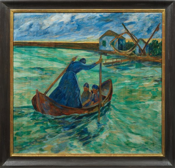 Expressionistisches, wohl um 1920 geschaffenes Werk. Gerbig lernte 1899 in Dresden den späteren "Brücke"-Künstler Max Pechstein kennen, mit dem ihn eine lebenslange Freundschaft verband. 1900-1911 studierte er an der Kunstgewerbeschule und Kunstakademie Dresden bei Richard Müller, Oskar Zwintscher und Gotthardt Kuehl. 1909 debütierte Gerbig in Heidelberg und Dresden, 1910 beteiligte er sich an der ersten Ausstellung der "Künstlervereinigung Dresden". 1912 erhielt Gerbig zusammen mit Theo von Brockhusen den Villa-Romana-Preis und 1912/13 ein Stipendiat in Florenz. Dort entdeckte er zusammen mit Pechstein, der ihn begleitete, auch den Fischerort Monterosso al Mare. 1913 ließ sich Gerbig in Suhl nieder. Nach dem I. Weltkrieg setzte Gerbig seine künstlerische Karriere fort; 1919 erschien ein Artikel über Gerbig in der Kunstzeitschrift "Deutsche Kunst und Dekoration", wodurch er weiter bekannt wurde. 1919-1921 beteiligte er sich an den Ausstellungen der Künstlervereinigung Dresden neben Heckel, Kirchner, Kokoschka, Meidner, Nolde und Pechstein. Nach weiteren Ausstellungserfolgen während der Weimarer Republik gehörte Gerbig im "Dritten Reich" zu den verfemten Künstlern, so dass 1937/38 Werke Gerbigs unter das Verdikt "Entartete Kunst" fielen. Öl/Lwd., doubl.; L. u. sign.; 77,5 cm x 83 cm. Rahmen.