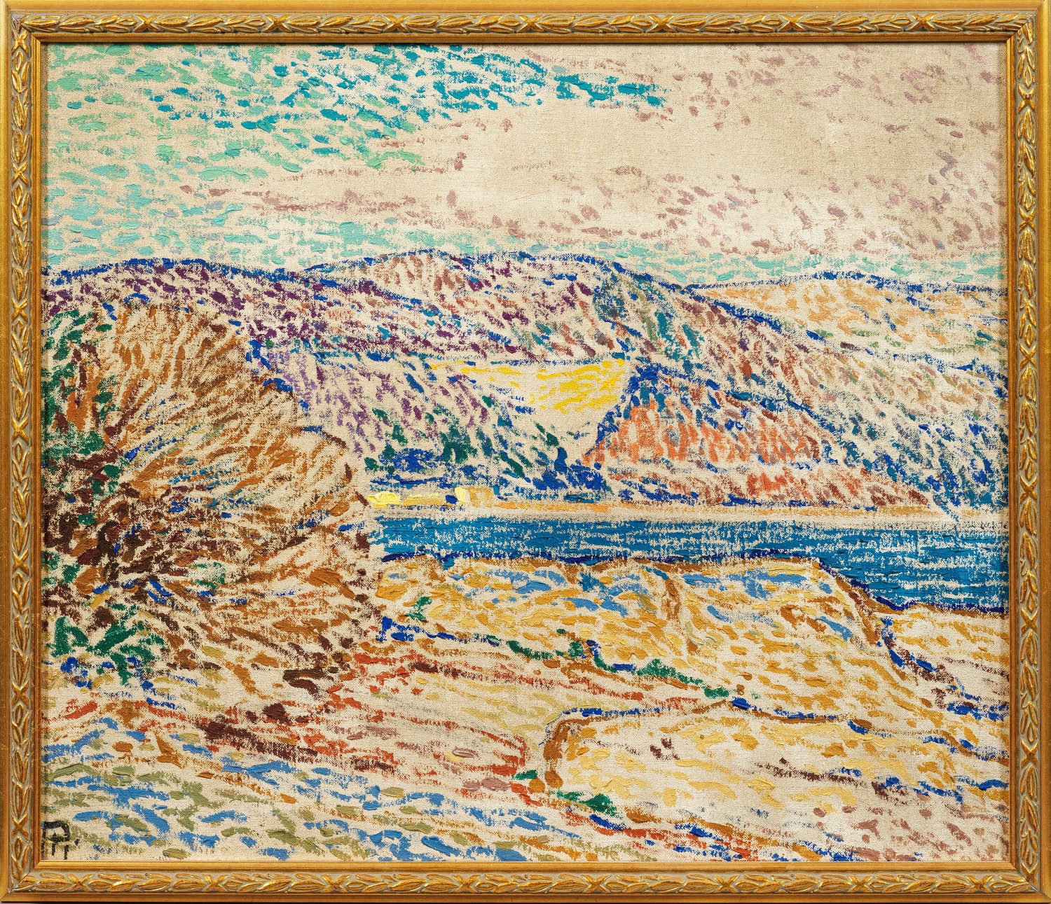In teilw. hell leuchtendem Kolorit gemalte, von den Pointillisten und Fauvisten wie Derain und Matisse beeinflusste Darstellung. Helberger reüssierte seit 1900 in der Berliner Kunstszene, wo er von 1903 bis 1933/34 u. a. in renommierten Galerien (Cassirer und Gurlitt) und den Großen Berliner Kunstausstellungen gezeigt wurde; zugleich beschickte er Ausstellungen in ganz Deutschland. Schon vor dem I. Weltkrieg malte er mit Vorliebe Norwegen-Motive, die ein Hauptsujet blieben, außerdem umfasste sein Oeuvre auch Bornholm- und Brasilien-Landschaften. In der NS-Zeit gehörte Helberger zu den als "entartet" verfemten Künstlern, erhielt Berufsverbot und erlitt Repressalien, zumal wegen der jüdischen Herkunft seiner Frau. Öl/Lwd.; L. u. Ligatur-Monogramm "AH". 49 cm x 58 cm. Rahmen.