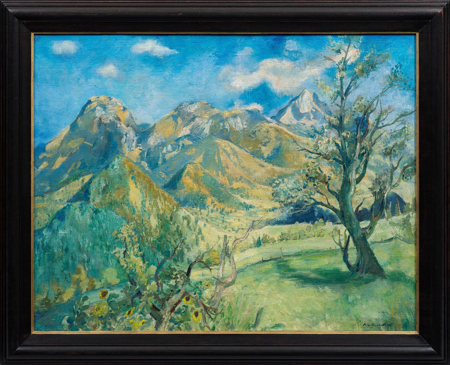 Das Gemälde verbindet, wie bei vielen Künstlern seiner Generation, impressionistische und expressionistische Stilelemente. Kohlhoff debütierte 1914 auf der Großen Berliner Kunstausstellung; 1917 trat er der "Berliner Secession" bei; 1919 gewann er den Großen Preußischen Staatspreis. In der Weimarer Republik gehörte Kohlhoff zu den renommiertesten Berliner Künstlern, der mit Kokoschka, Hofer, Grosz, Dix und Beckmann ausstellte. Die Bilder dieser Epoche zeichnen sich durch vehemente Pinselführung und einen dynamischen, rhythmischen Schwung voller Kraft und Verve aus, seine Palette wird zunehmend heller. Im "Dritten Reich" wurden eine Reihe von Werken Kohlhoffs von den Nationalsozialisten als "entartet" verfemt und aus öffentlichen Sammlungen beschlagnahmt. Öl/Lwd.; R. u. sign.; 72 cm x 94 cm. Rahmen.