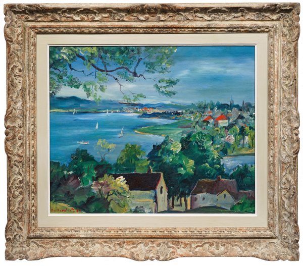 Expressionistisches Hauptwerk Heckendorfs von 1927 aus einer Reihe von Ansichten meist mediterraner Hafenstädte der 1920er Jahre. Typisch ist die Dynamik des verdichteten Vortrages und eine straffe Konturierung bei formal abgekürzter, flächiger Wiedergabe. Heckendorf stellte ab 1909 regelmäßig in der "Berliner Secession" aus, seit 1917 war er Jury-Mitglied. In der Weimarer Republik gehörte Heckendorf zu den überzeugendsten und prominentesten Expressionisten neben den "Brücke"-Künstlern. Während des "Dritten Reiches" wurde Heckendorf verfemt, seine Bilder galten ab 1937 als "entartete Kunst"; 1943-1945 saß der widerständige Künstler in Haft. Öl/Lwd.; L. u. sign. u. dat. (19)27. 57 cm x 75 cm. Rahmen.