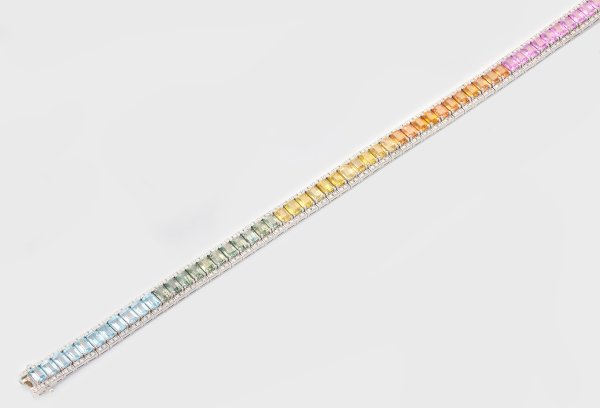 Lot 963: Brillant-Saphir-Topas-Rivière-Armband in Regenbogenskala