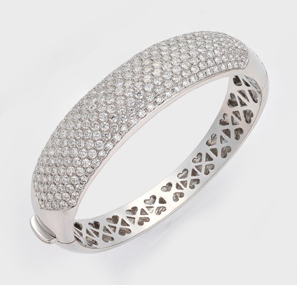 Weißgold, gest. 750. Schauseitig besetzt mit Brillanten von zus. ca. 11,00 ct. (H/vvs), in Pavéfassung. Gew. ca. 54,57 g.