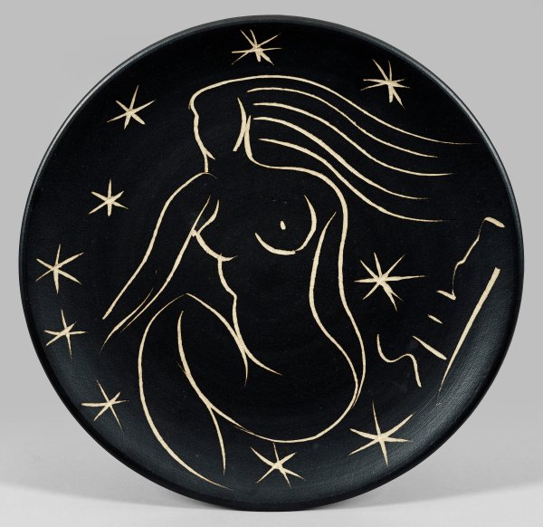 Große Künstlerkeramik-Platte mit weiblichem Akt