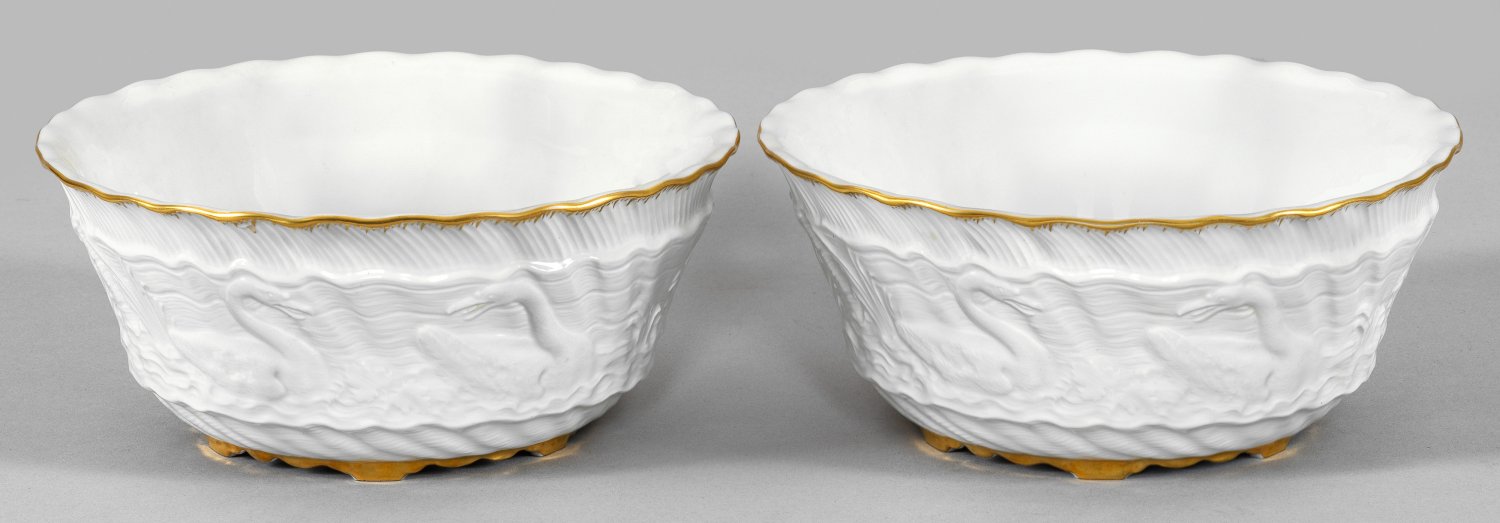Lot 490: Paar Servierschalen mit Schwanenservice-Dekor