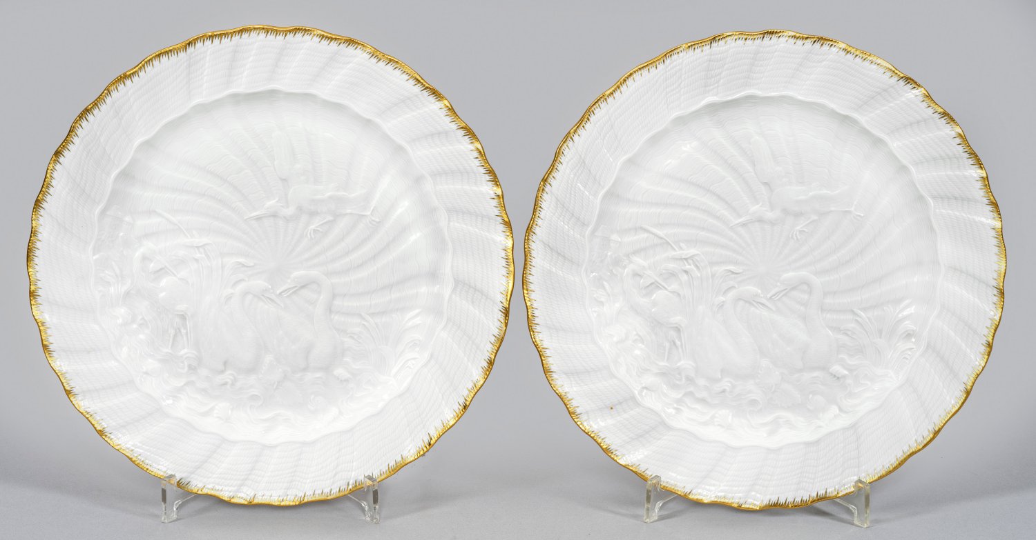 Lot 495: Paar Platzteller mit Schwanenservice-Dekor