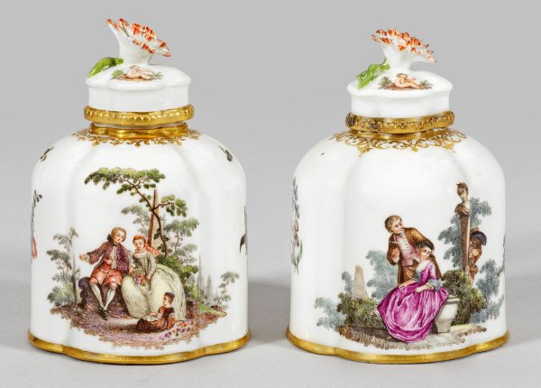 Lot 739: Paar feine Teedosen mit Watteauszenen