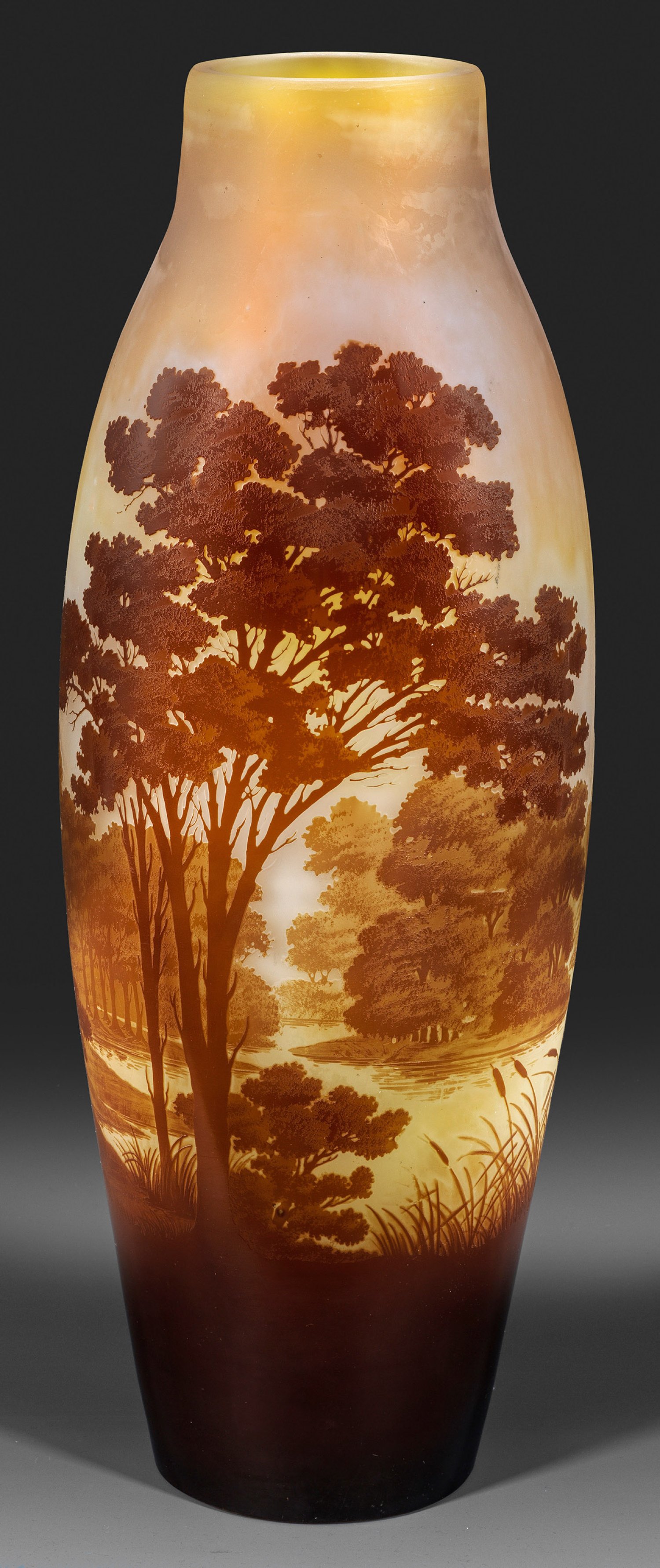 Lot 91: Große Gallé-Ziervase mit Flusslandschaft
