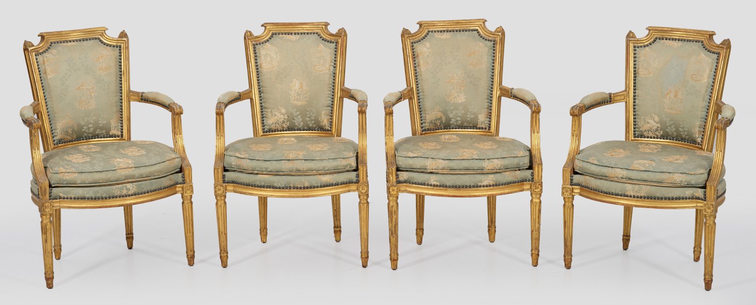 Lot 1318: Satz von vier Louis XVI-Armlehnstühlen