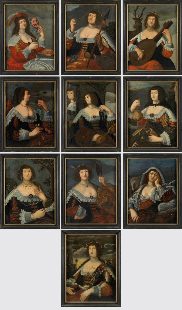 Seltene Serie von 10 Barock-Gemälden mit weiblichen Allegorien