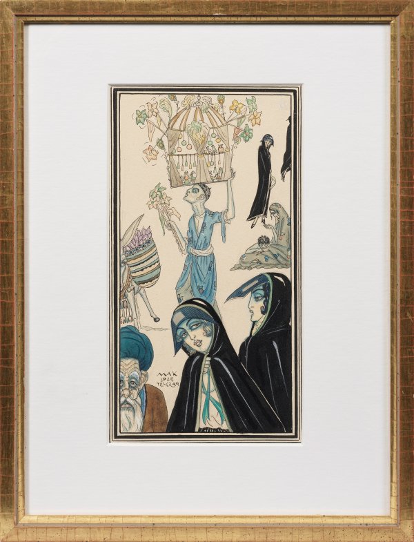 Indian ink, watercolor and gouache on paper. Signed and dated 1924 with location Teheran.