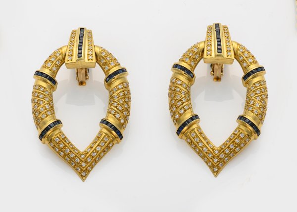 Lot 882: Paar glamouröse Saphir-Brillant-Ohrringe