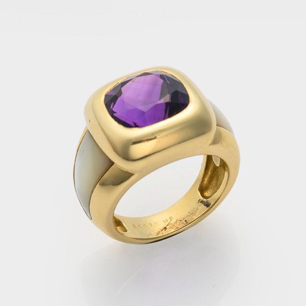 Ring by Van Cleef & Arpels, set with an amethyst and mother of pearl, 18 k gold. Manufacturer's mark.
