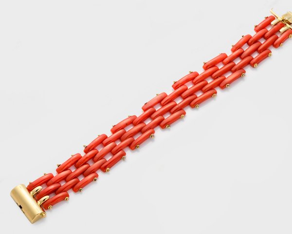 Coral bracelet, clasp in 18 k gold.
