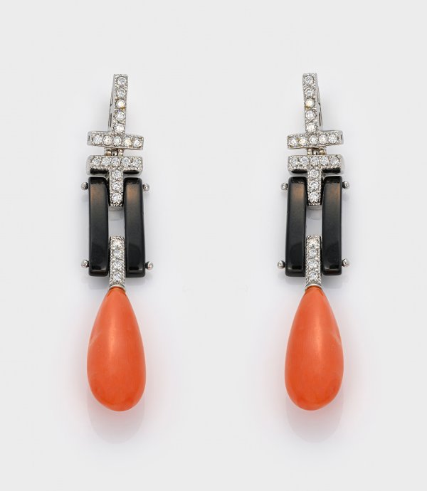 Lot 974: Paar Ohrgehänge im eleganten Art Déco-Stil