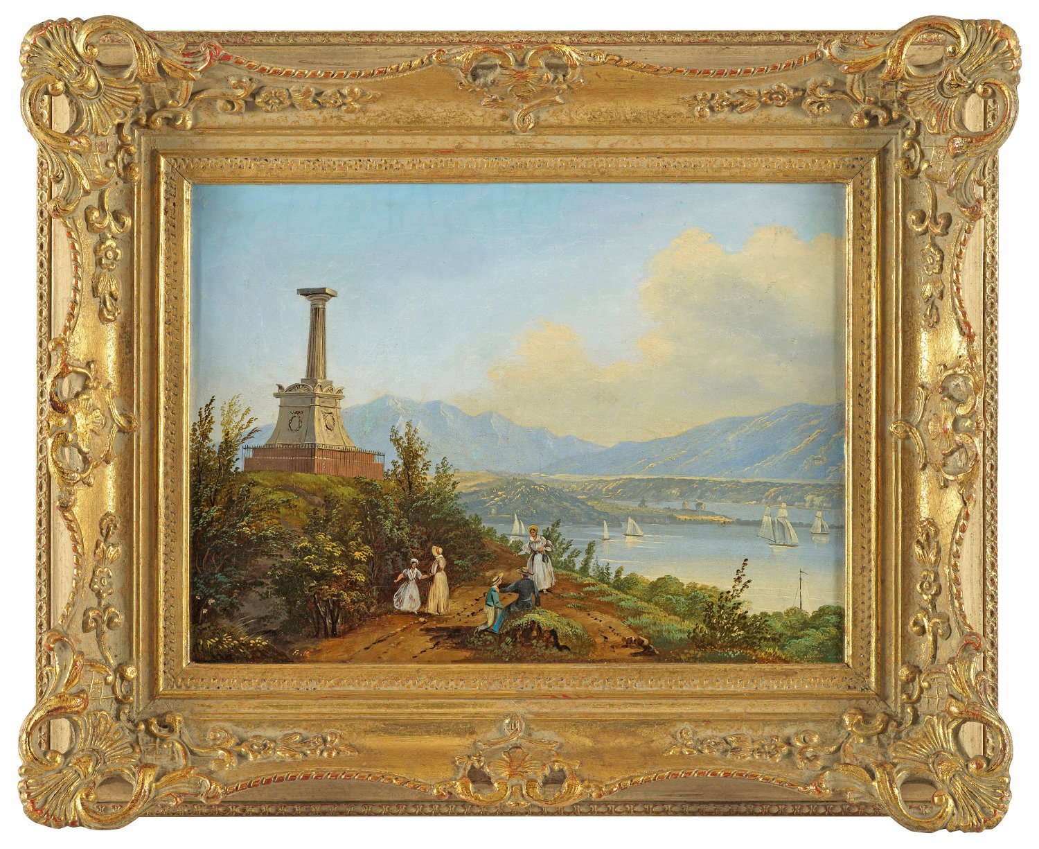 Spätbiedermeierliche, sommerlich gestimmte Ansicht des berühmten, 1828 eingeweihten Monuments (das 1913 noch eine Statue erhielt). Öl/Lwd., auf Hartfaser kaschiert. L. u. monogr.; 27 cm x 35,5 cm. Rahmen.