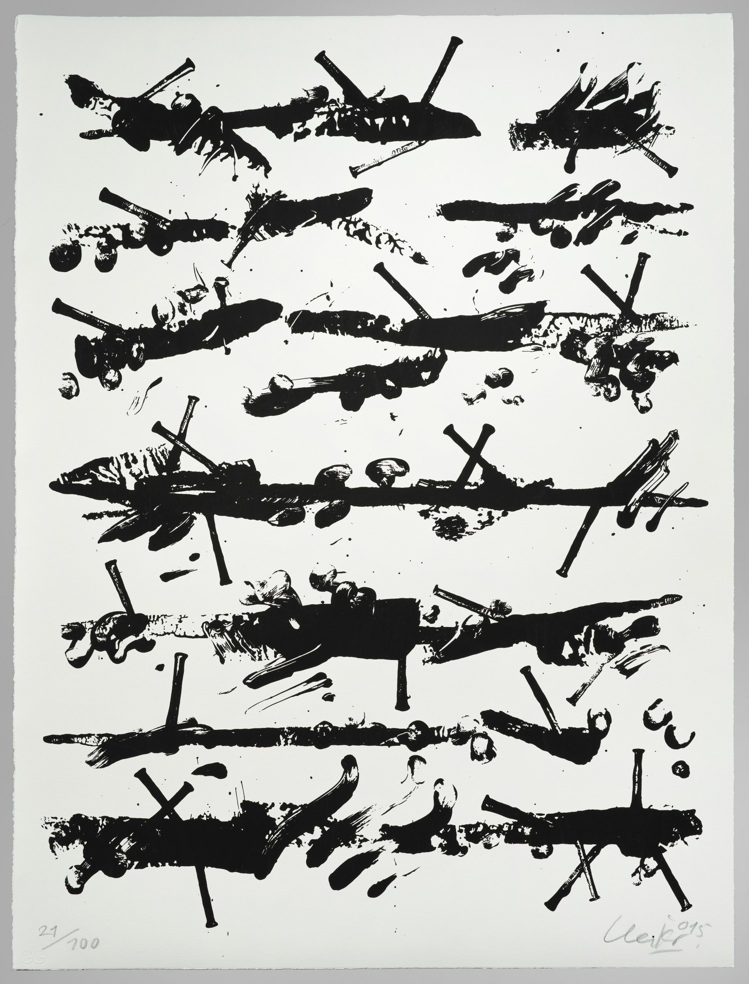 Siebdruck/Bütten, 2015. Sign., dat. 2015 und nummeriert 21/100. Blindstempel des Verlegers. Blatt 3 der 9-teiligen Mappe "Friedensgebote", erschienen in einer Auflage von 100 + XXV + E.A. Expl. bei Geuer & Geuer Art, Düsseldorf. Blatt 71,2 cm x 53 cm.
