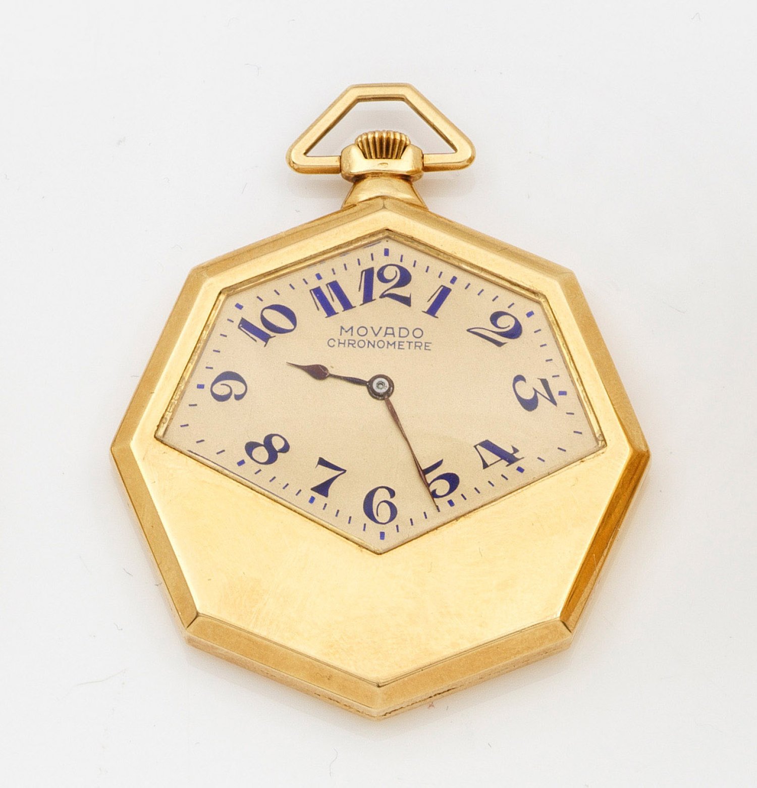 An Art Deco pocket watch by Movado, circa 1930/40. Case in 18 k gold. Mechanical movement with crown wind.