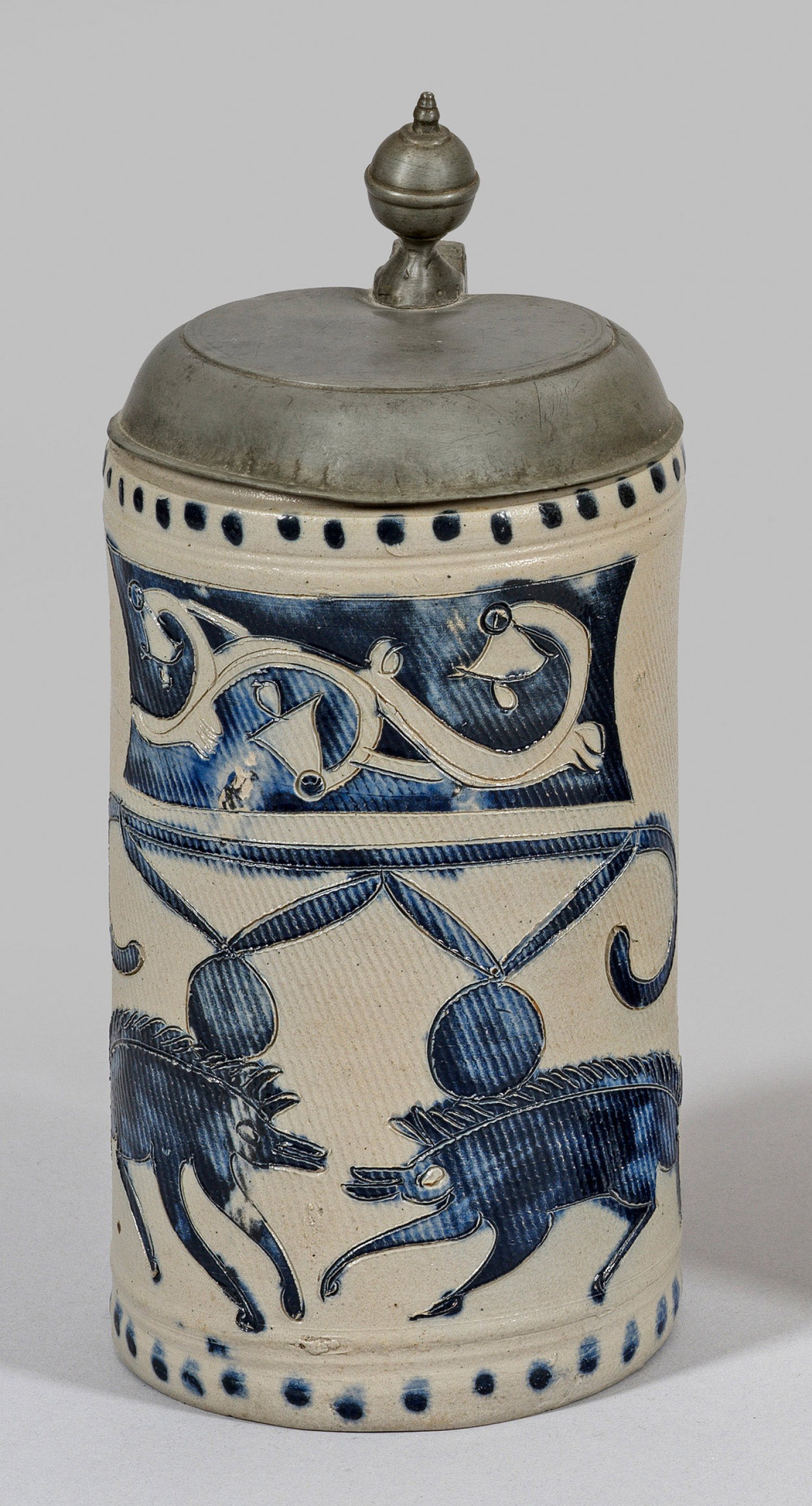 Lot 3037: Westerwälder Walzenkrug mit Wildschwein-Dekor