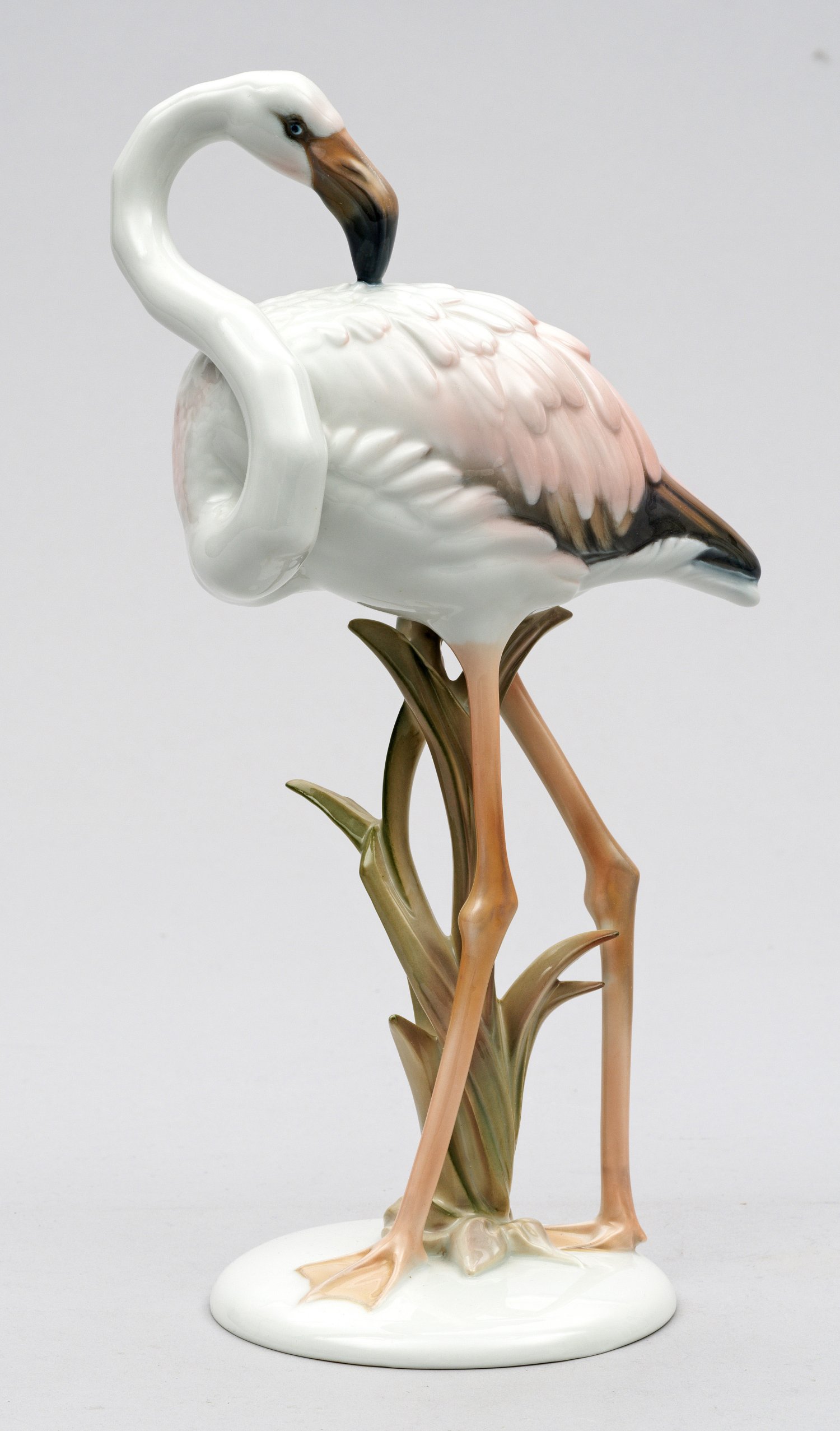 A porcelain flamingo figure designed by G. Oppel. Manufacturer's mark.