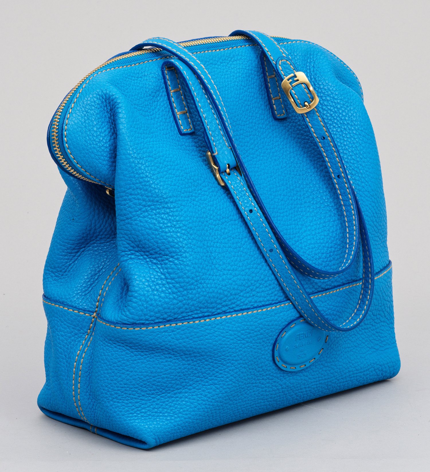 A blue leather bag by FENDI. Manufacturer's mark. Dust bag.