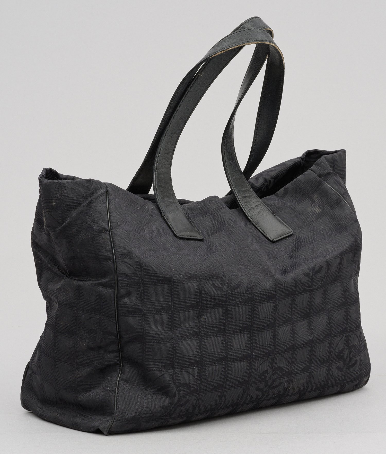 A black nylon bag by Chanel. Signs of use. Stains. Manufacturer's mark. Carte d'authenticité.