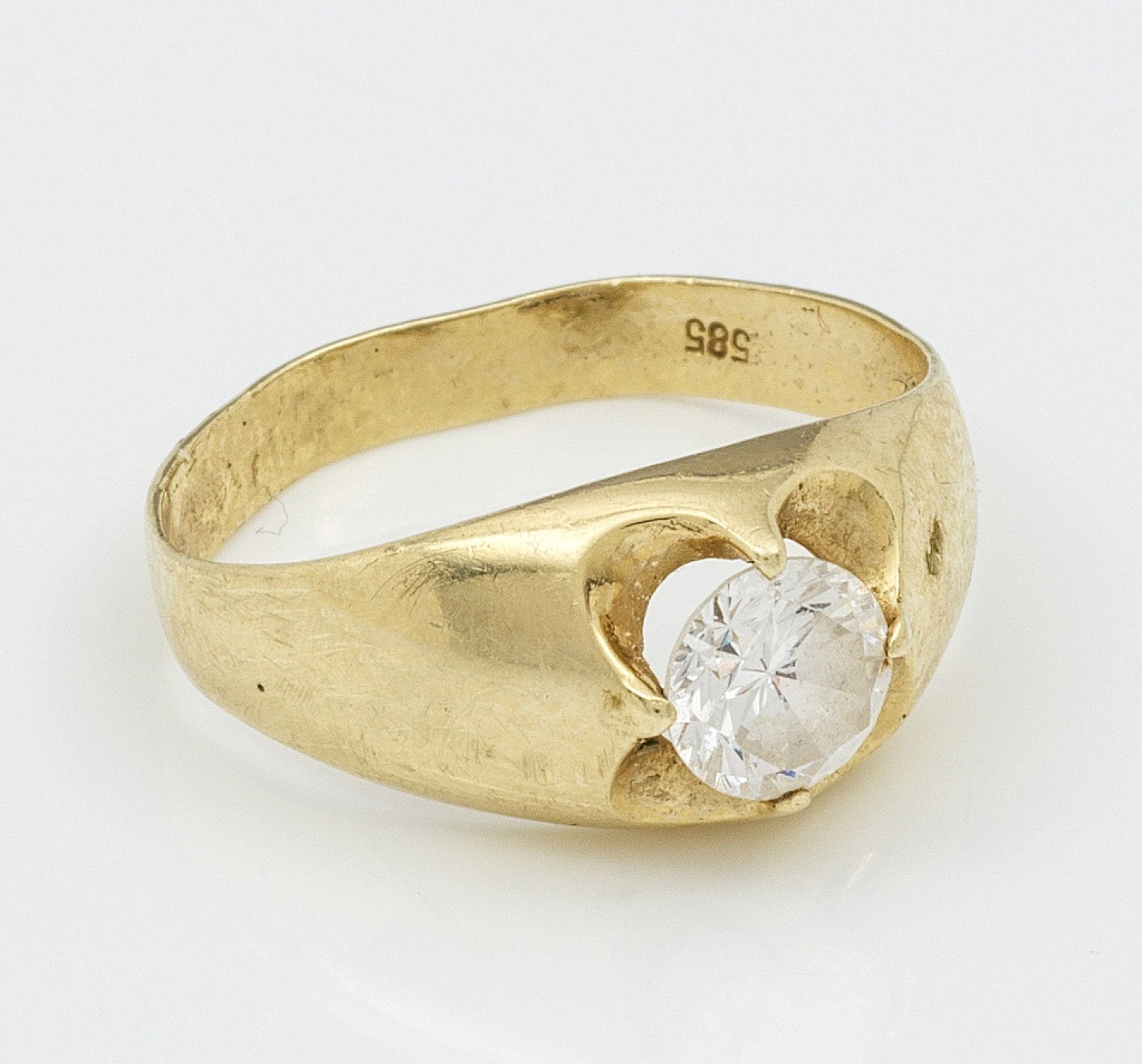 Gelbgold, gest. 585. Zentral besetzt mit einem Altschliffdiamanten von ca. 0,60 ct.; Gew. ca. 3,09 g.