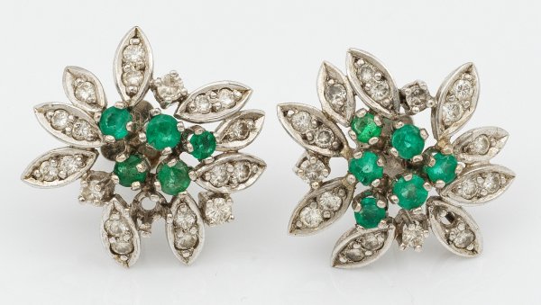 Lot 3430: Paar Blüten-Ohrringe mit Smaragden