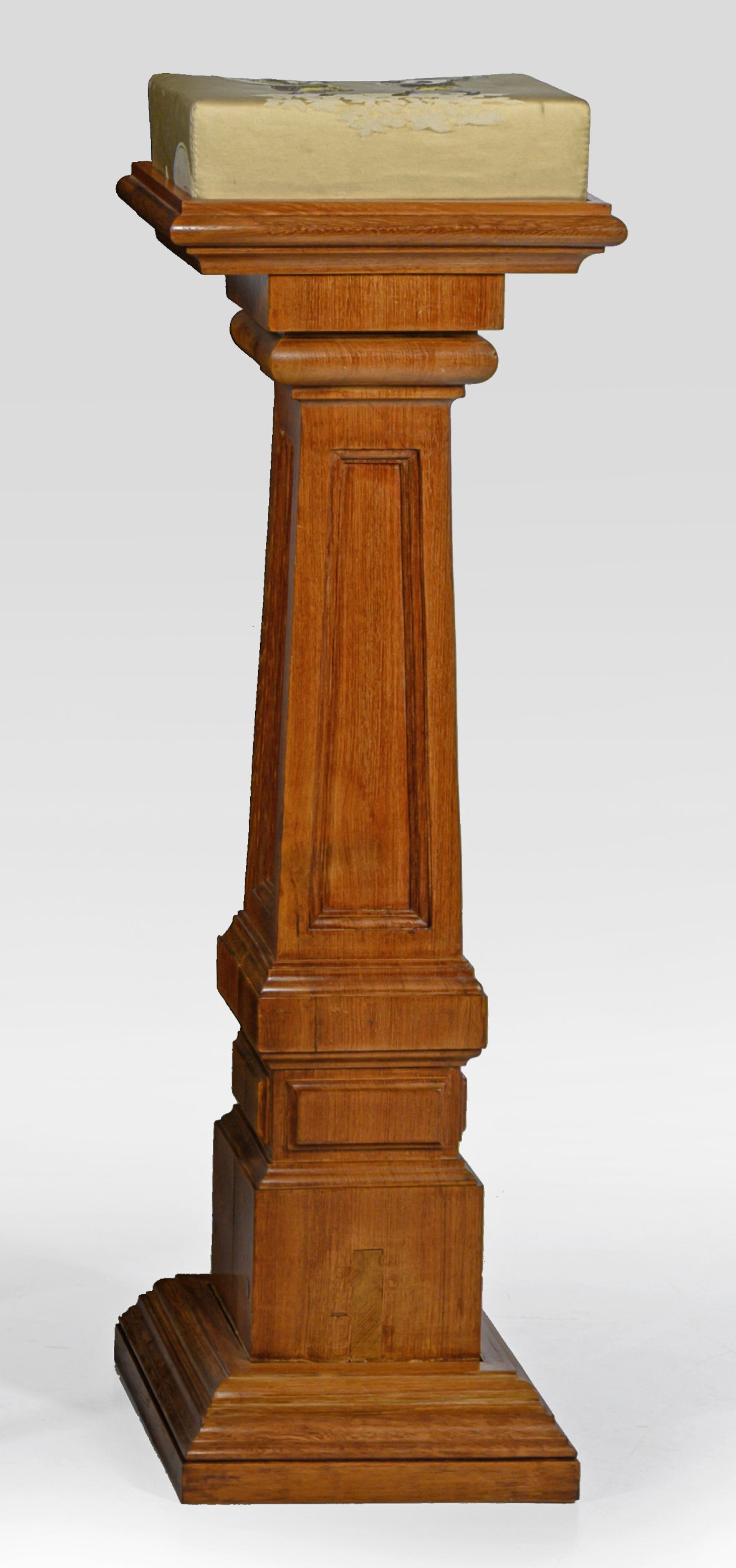 Holz. Über profilierter Basis gekanteter, sich konisch verjüngender Balusterschaft. Gering überstehende Deckplatte mit erg. Abdeckung. Ges.-H. 88 cm.