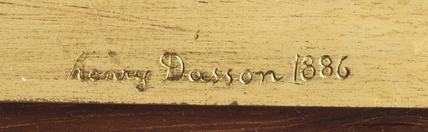 Henry Dasson (1825-1996), der berühmte Pariser Ebenist für Luxusmöbel, häufig nach berühmten historischen Vorbildern, begann im Gegensatz zu anderen Tischlern seiner Zeit, seine Karriere als Bronzebildhauer, was sich nicht zuletzt an der Güte seiner Bronzeapplikationen zeigt.