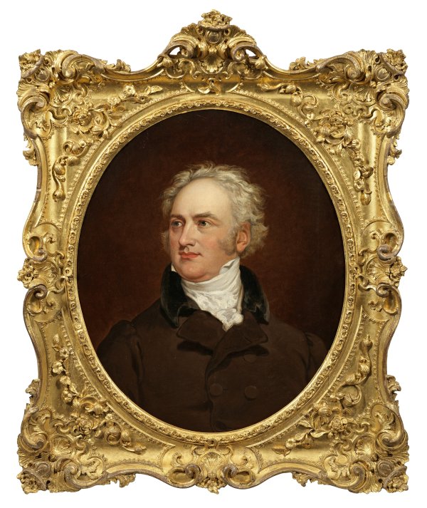 Repräsentatives, in ein Oval komponiertes Bildnis Coopers in dunkelbrauner Jacke und weißer Halsbinde über dem Stehkragen, den Kopf ins Halbprofil gewandt. Der über das Vereinigte Königreich hinaus berühmte, bedeutende englische Anatom und Chirurg war überdies Leibarzt der Könige George IV. und William IV. sowie von Königin Victoria. 1828 malte Thomas Lawrence sein bekanntes Hüftbildnis des Mediziners, auf dem das vorliegende Porträt basiert. Lawrence prägte die europäische Porträtmalerei seiner Zeit und wurde 1792 nach dem Tod Joshua Reynolds' Hofmaler. 1794 nahm ihn die Royal Academy auf, 1820 wurde er deren Präsident. Öl/Lwd.; 76 cm x 63,5 cm. Im Oval. Prunkrahmen des 19. Jhs.