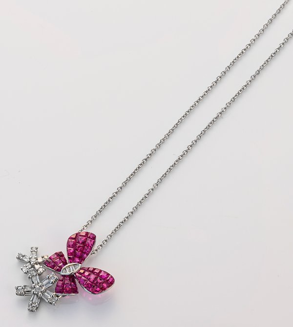 Lot 938: Charmanter Butterfly-Rubin-Diamantanhänger