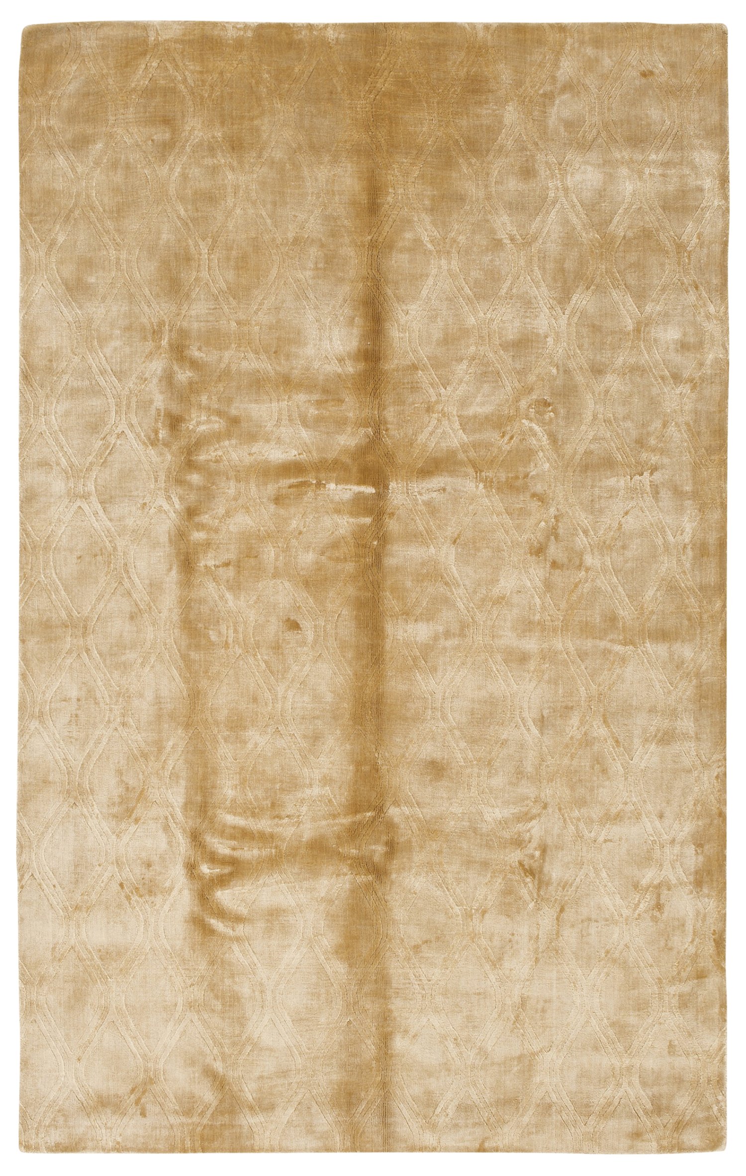 Indien. Mercerisierte Baumwolle auf Baumwolle. Reliefmuster. Auf gold-beigefarbenem Fond flächendeckend reliefierte Rautenmusterung en coleur. 150 cm x 250 cm.