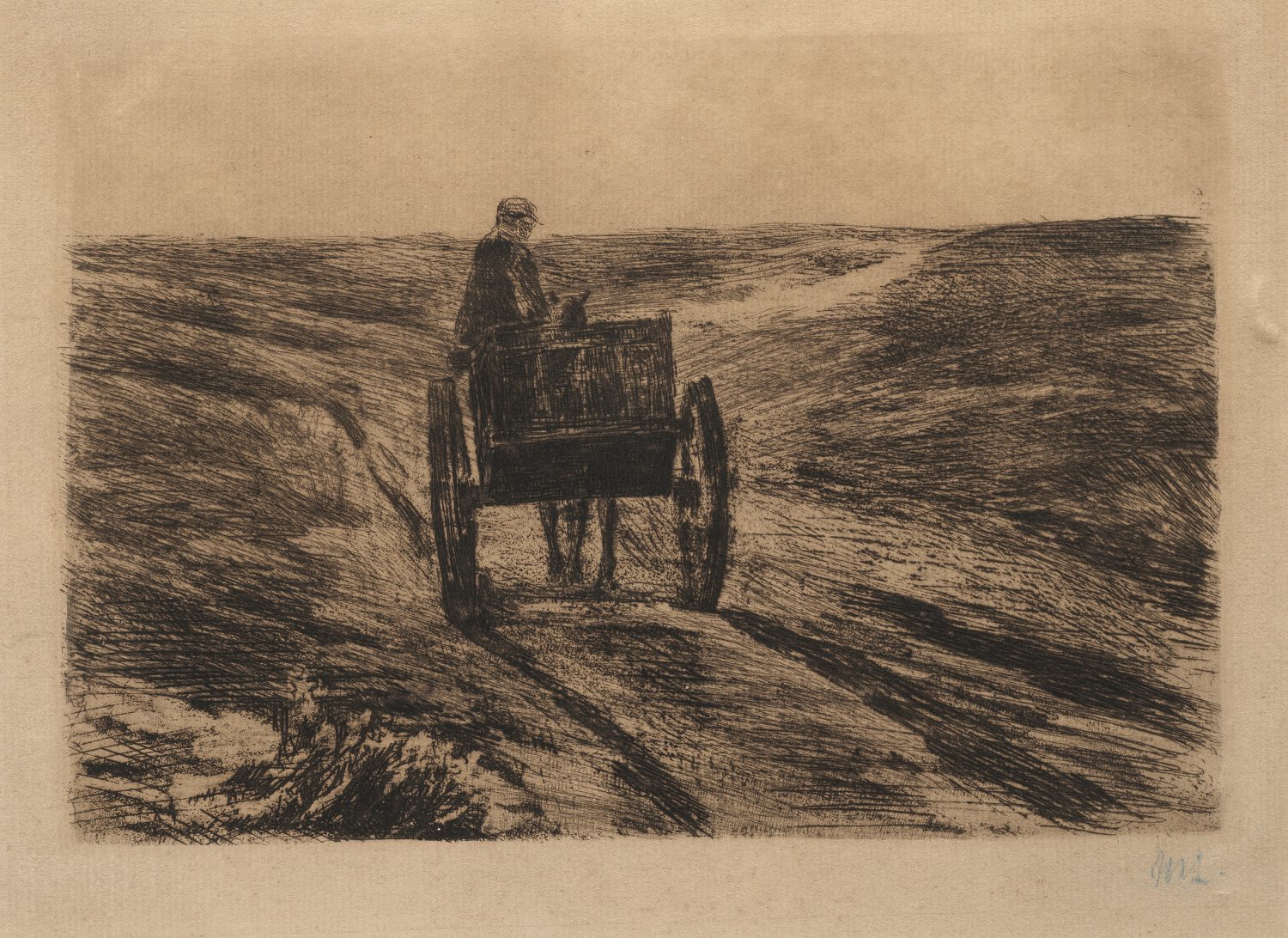 Radierung und Kaltnadel/Bütten (Wasserzeichen), 1900. R. u. in Blau monogr.; Das Motiv erschien in der Insel-Mappe, herausgegeben vom Insel-Verlag, Leipzig 1900. Wvz. Schiefler 50. Blatt 28 cm x 35,3 cm. 20,5 cm x 26 cm (Passepartoutausschnitt). Rahmen.